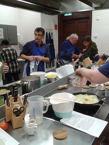 Dieser Kurs fand in diesem Wintersemester erstmalig statt. Die meisten der Teilnehmer kannte ich schon, was mich sehr gefreut hat. Gemeinsam wurde acht Gerichte gekocht. Hier nun ein paar Bilder von den fleißig Teilnehmern: