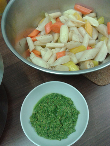 Schwarzwurzel – Möhrengemüse mit Petersilienpesto