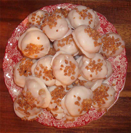 125g getrocknete Aprikosen, 1EL Rum oder Apfelsaft, 200g Marzipanrohmasse, 1/4 TL getrocknete Lavendelblüten,100g Puderzucker, 150g Zitronenglasur, Haselnuss – Krokant zum bestreuen Die Aprikosen fein würfeln und dann in den Rum oder Apfelsaft einlegen für mindestens 2 Stunden. Lavendelblüten im Mörser zerreiben. Dann die Aprikosen mit dem Marzipan, den Lavendelblüten und dem Puderzucker gut verkneten. […]