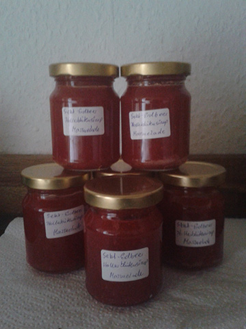 Ihr braucht dafür: 500g Erdbeeren, 200ml Rose Sekt trocken, 200ml Holunderblütensirup, 1 Packung (350g) Gelierzucker mit Süßungsmittel aus Stevia 2:1, Erdbeeren waschen, putzen, in kleine Stücke schneiden und in einen Topf geben. Den Gelierzucker und den Sekt dazu geben. Gut umrühren und so ca. 1h stehen lassen. Dann mit dem Pürierstab mixen. Den Sirup dazu […]