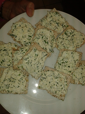Frischkäse mit Kräutern auf Vollkornknäckebrot