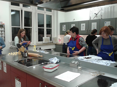 Diesen Kurs habe ich jetzt das dritte Semester im Programm und macht immer rießen Spaß. Alles dreht sich um Schokolade in unterschiedlichen Geschmacksrichtungen. Die fertigen Parlinen dürfen die Teilnehmer natürlich mit nach Hause nehmen und sind zum selbst essen oder zum verschenken.
