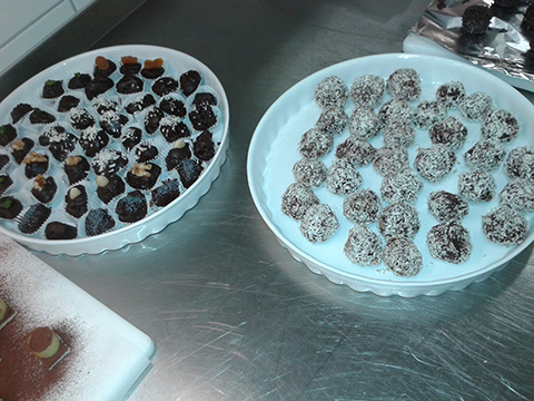 Wir haben 15 verschiedene Pralinensorten hergestellt und jeder Teilnehmer hat seine Lieblingssorte gefunden und alle waren sehr kreativ bei den Formen der Pralinen und bei den Verzierungen.