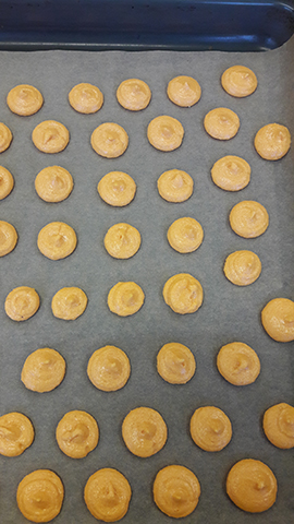 Diesmal gab es 5 Gruppen und es wurden nicht nur die mit Lebensmittfarbe gefärbten Macarons gemacht, sondern auch das erste Mal Schokoladen Macarons.