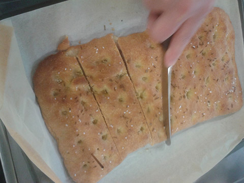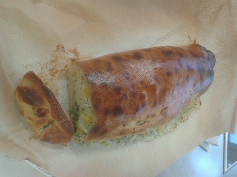 eine lecker Focaccia gefüllt mit Schinken, Oliven und Schafskäse…