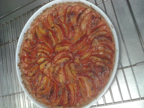 ein oberlecker Früchtetarte (hier sind es Nektarinen) mit selbstgemachter Marmelade und Lavendel…. Das Rezept für die Marmelade gibts hier.
