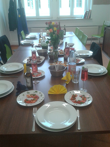 gemeinsames essen und gegenseitiges loben der Menüs….