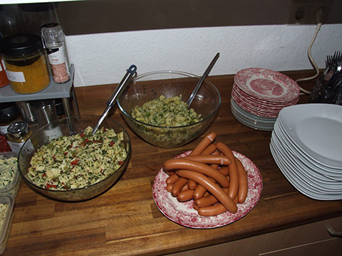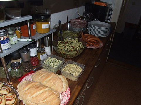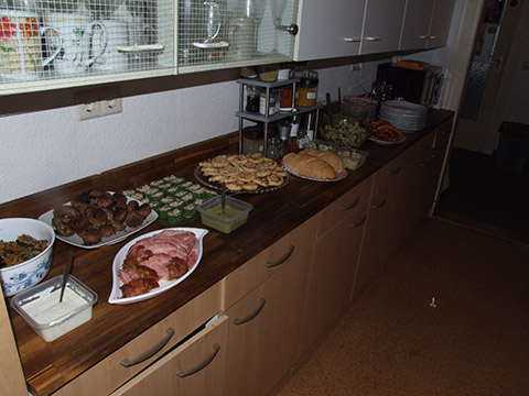 Und das kam dabei heraus – eine Küche voller Essen 🙂 Dank Florian und Katrin hat am Abend alles geklappt. Sie haben das Buffet am Abend aufgebaut, da ich ja schon um 16.30 Uhr zur VHS los musste.
